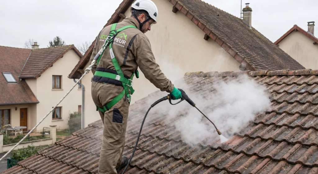 Le processus repose sur la combinaison de chaleur et de pression modérée. La vapeur pénètre les pores des tuiles. Elle décolle les dépôts organiques sans altérer le matériau. Progressivement, mousses et lichens se détachent naturellement.