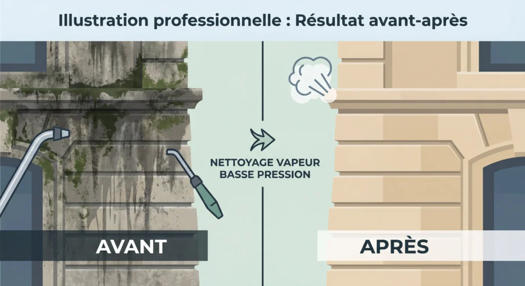 « Le nettoyage vapeur basse pression permet un nettoyage respectueux, curatif et écologique, préservant les surfaces tout en éliminant durablement mousses et bactéries »