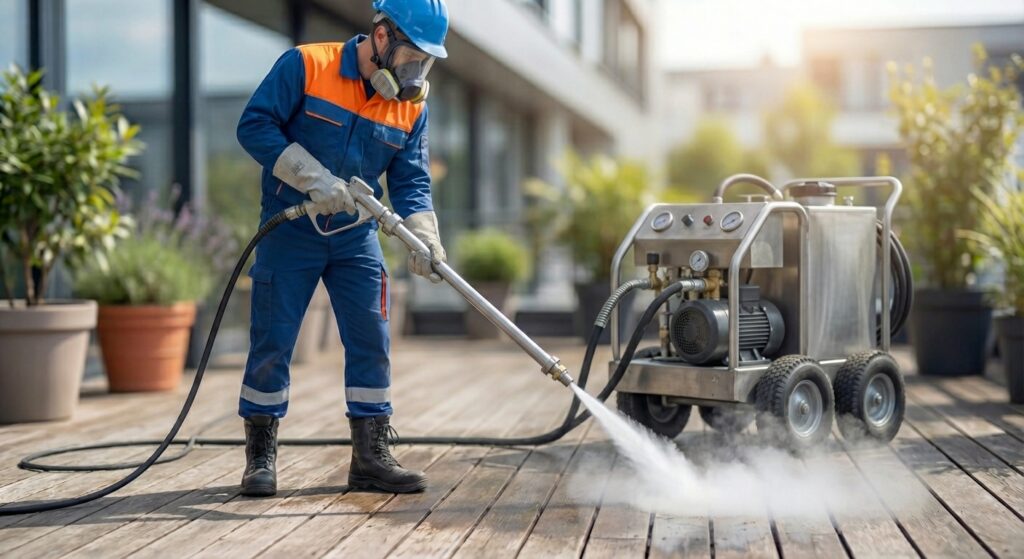Oui. La chaleur de la vapeur détruit efficacement bactéries, moisissures et champignons présents en surface. C’est un avantage majeur pour les terrasses en bois ou les murs exposés à l’humidité.