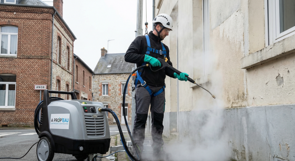 | Matériel professionnel : Les équipements utilisés par A PROP’EAU intègrent des systèmes de régulation précise de la température et de la pression, garantissant une adaptation parfaite à chaque type de surface. La formation spécialisée de nos techniciens assure une mise en œuvre optimale de cette technologie. | ||