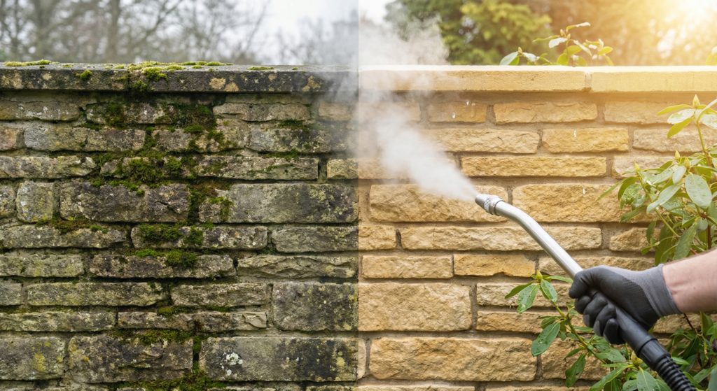 Le nettoyage vapeur basse pression présente des bénéfices exceptionnels pour l’entretien des façades à Maubeuge. Contrairement aux méthodes traditionnelles utilisant des détergents agressifs, cette technique écologique élimine bactéries, graisses et saletés uniquement grâce à la puissance de la vapeur d’eau.