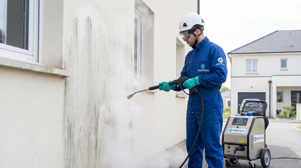 Les façades peintes ou enduites subissent au fil du temps les assauts de la pollution, des intempéries et des micro-organismes. En 2026, le nettoyage vapeur basse pression s’impose comme la méthode de référence pour redonner éclat et propreté à vos murs extérieurs, sans compromettre leur intégrité. A PROP’EAU, spécialiste du nettoyage écologique dans le Nord et départements limitrophes, vous accompagne dans l’entretien durable de votre patrimoine.
