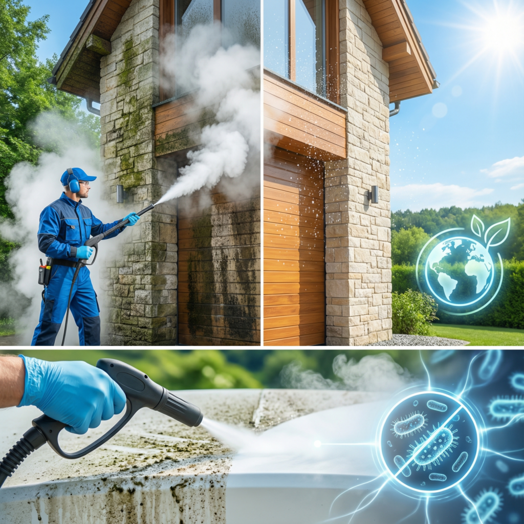 La vapeur basse pression agit en profondeur tout en préservant l’intégrité des matériaux. Cette douceur évite les décollements, infiltrations d’eau et dégradations prématurées, particulièrement cruciale pour les bardages sensibles, toitures en tuiles anciennes et revêtements délicats.