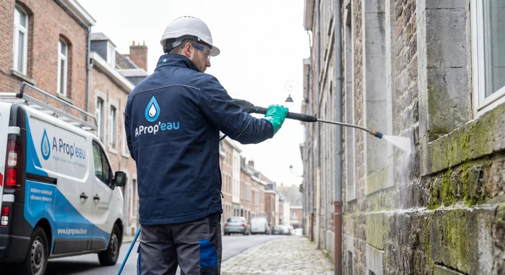 Les techniciens A Prop’eau règlent précisément la température et la pression. Chaque surface nécessite des paramètres spécifiques. Par exemple, les façades peintes demandent plus de douceur. À l’inverse, les sols en béton supportent des réglages plus puissants.