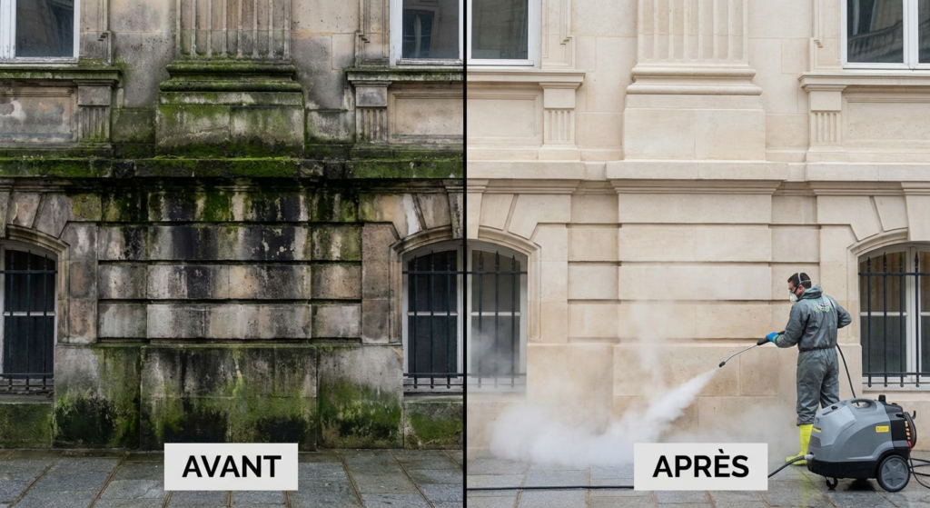 Néanmoins, la pression reste basse pour préserver les surfaces délicates. Cette combinaison température élevée et pression modérée garantit un nettoyage optimal. Les façades retrouvent leur éclat d’origine sans subir d’agression mécanique.
