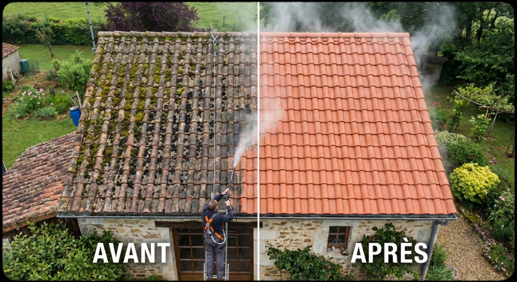 Le nettoyage vapeur écologique offre une durabilité exceptionnelle. Grâce à l’action thermique qui détruit les spores à la source, les mousses et lichens mettent beaucoup plus de temps à réapparaître. En moyenne, l’effet dure entre 5 et 7 ans, contre 2 à 3 ans avec un nettoyage classique. Cette longévité représente une économie substantielle sur le long terme.