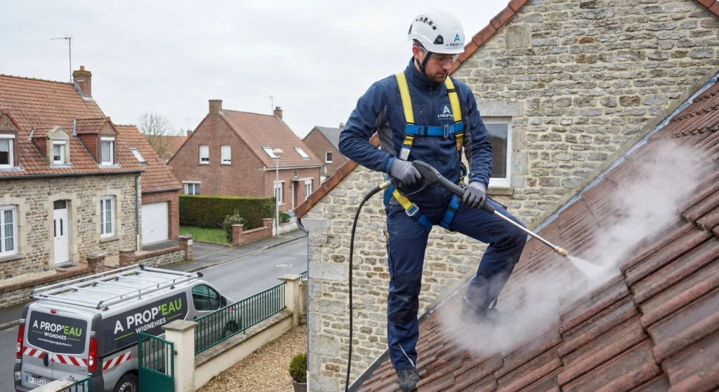 Vous cherchez une méthode efficace pour nettoyer votre toiture sans l’abîmer ? Découvrez le nettoyage vapeur basse pression, une technique révolutionnaire qui transforme l’entretien des surfaces extérieures. En effet, cette méthode écologique préserve vos matériaux tout en garantissant un résultat impeccable. Chez A PROP’EAU, nous intervenons à Wignehies et dans toute la région du Sud-Avesnois et de la Thiérache.
